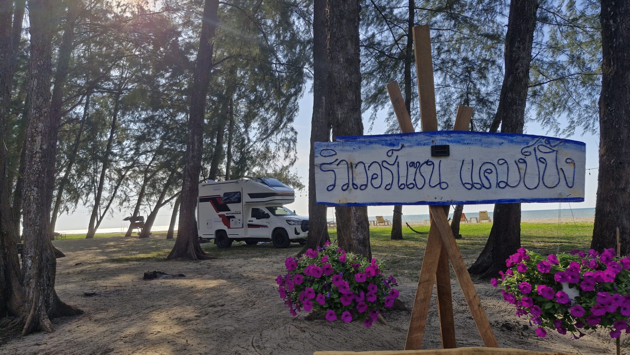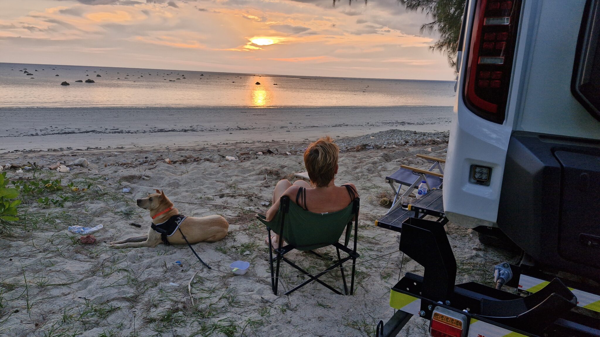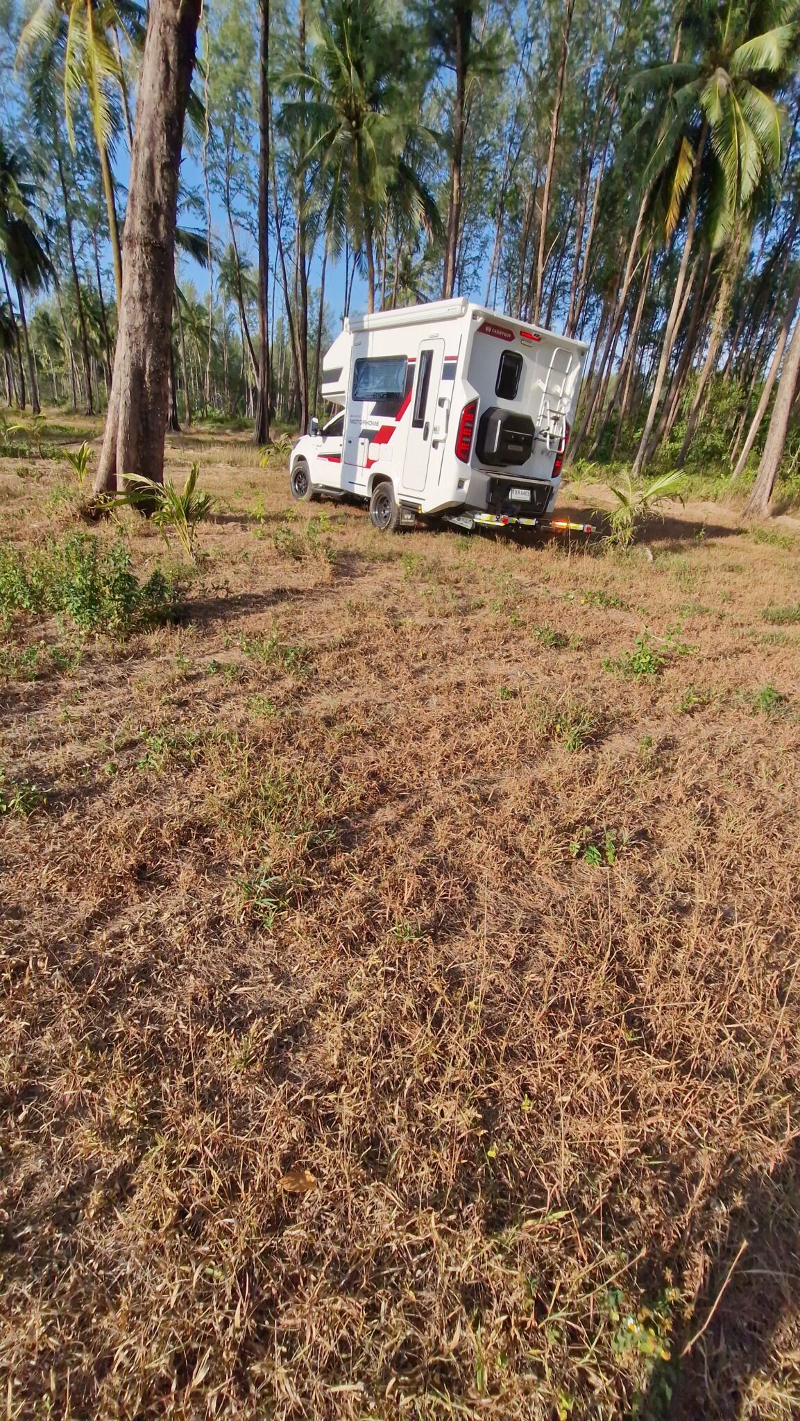 We verkennen eerst de camper op een plekje dichtbij. Gaan hier ook de 4wheeldrive testen, daarna rijden we nog naar Thai Muang waar we in het National Park overnachten. Buddy is er illegaal, want hondjes mogen daar eigenlijk niet..