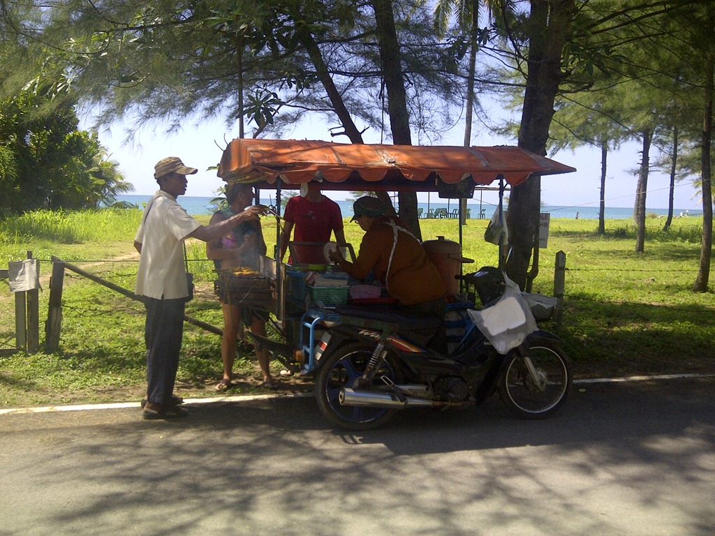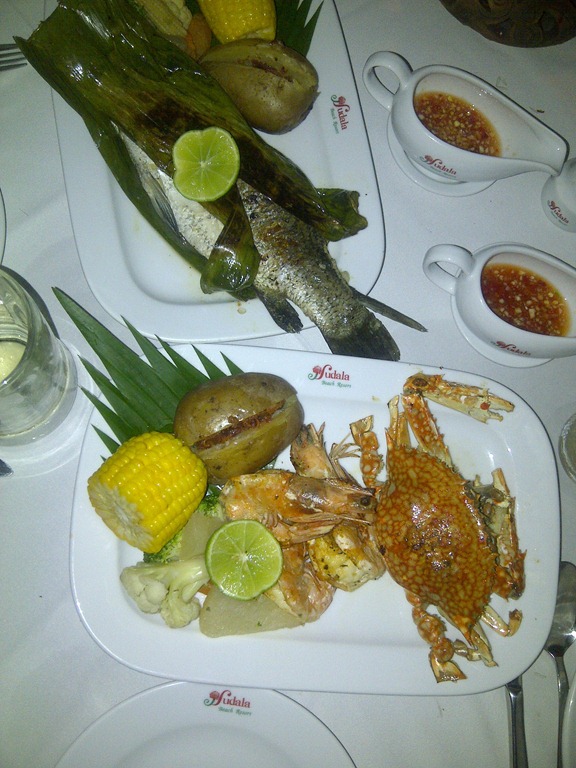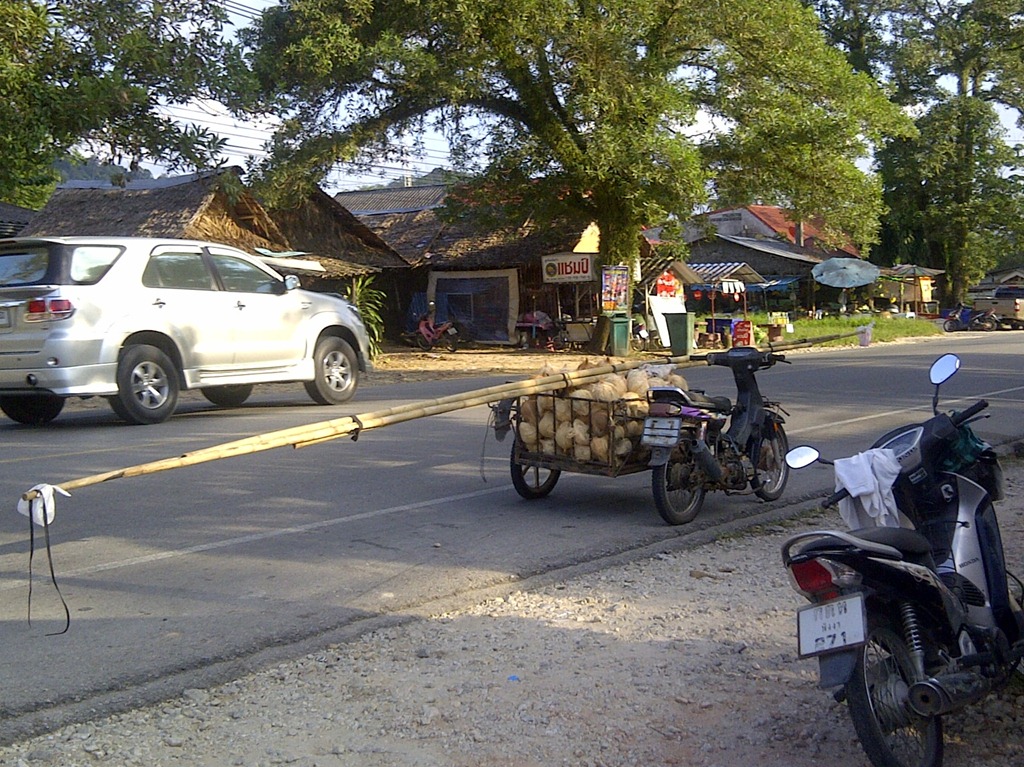 Zo, klaar voor de start! Onze Thaise kokkin is kokkin en geen lerares, dat moge duidelijk zijn, in een razend tempo maken we een Tom Yum soepje, papayasalade, barracuda met knoflook/pepersaus en nasi met ananas (in een ananas!), we schrijven, maken foto’s, snijden, hakken, wokken, schrijven, proeven, snijden, stampen, frituren, en koken de soep! tevens zijn we het familie-entertainment van deze zondag, iedereen staat door de luikjes naar ons te kijken! We leren dat de Thaise keuken m.n. werkt met sojasaus, vissaus (nam pla), oestersaus, suiker en curry-poedertjes en pepertjes .