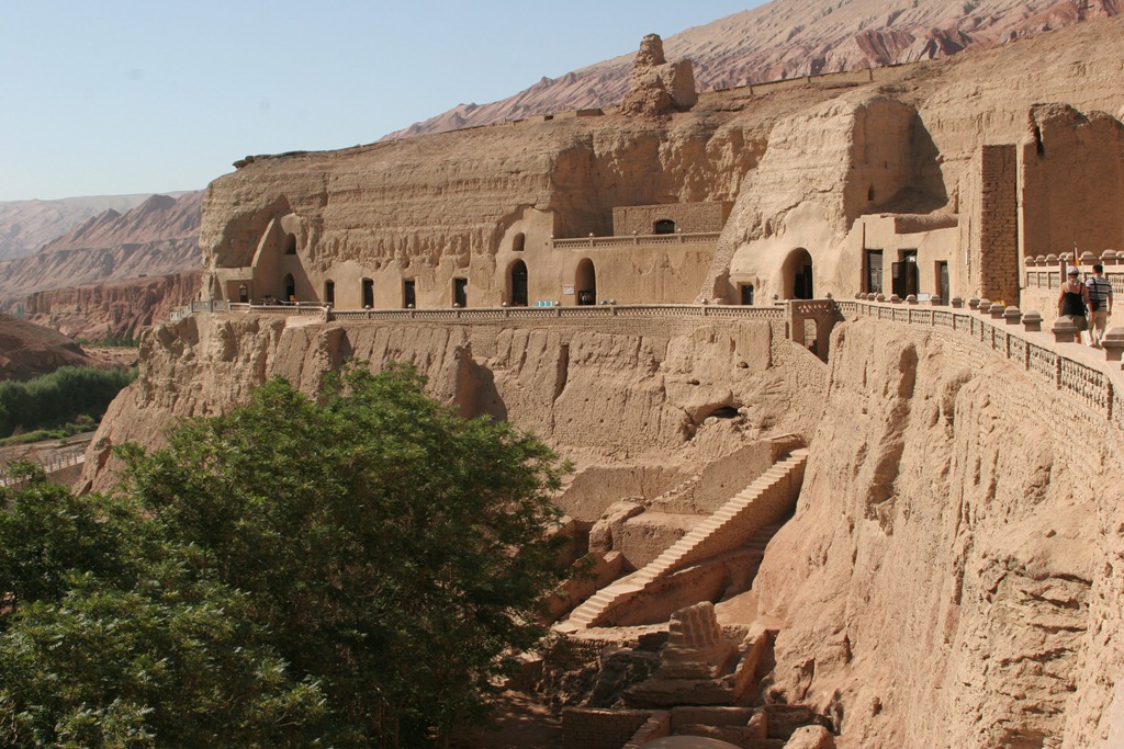 Nu dus in Turpa. Hier kwamen de noordelijke ne de zuidelijke zijderoute bij elkaar. De oude stad Jiaohe, verlaten vanaf 1300 na Chr. hebben we bezocht, evenals de vlammende bergen, vanwege het ijzererts een rode kleur. Ook de grotten waar ooit eens mooie boeddhistische tekeningen waren, maar inmiddels geplunderd en ook verlaten.