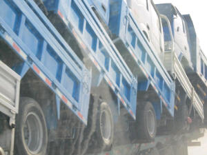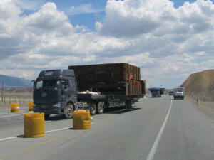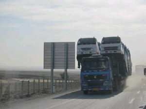 Het is ongelofelijk wat hier over de weg rijdt! Elke keer weer zien we nieuwe grote, brede, hoge en hele lange vrachtwagens! Dat wat in Europa absoluut verboden is, dendert hier gewoon over de weg! Wat er allemaal op vervoerd wordt: scooters, 3 wielersbakkies, auto’s en vandaag zagen we zelfs deze busjes op een vrachtwagen! Wanneer we even niet genieten van het mooie landschap amuseren we ons met wegperikelen!