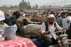 Afgelopen zondag zijn we naar de zondagmarkt geweest en hebben daar de dierenhandel mogen aanschouwen, geiten, schapen, poesjes, honden, koeien, en paarden worden daar verkocht. Het gaat er wat anders dan bij ons, en de beestjes worden ook anders vervoerd. De schapen hebben allemaal een enorme vette kont, met 2 kwabben een links en een rechts. Wij dachten eerst nog dat ze ziek waren, maar het schijnt een apart ras te zijn. Ze zijn allemaal keurig geknipt, nee niet geschoren, maar letterlijk geknipt en staan op een rij te wachten op een nieuwe eigenaar. De koeien en stieren worden in een wagentje geduwd als ze verkocht zijn en weer verplaatst, geen mooie schuine looptredes, nee vastpakken bij de staart en flink duwen! Een bijzondere pinksterdag was het!