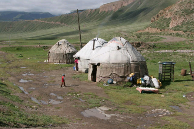 Ongeveer 15% van de Kirgiziërs leeft als nomaden. Wanneer de jongste zoon vh gezin trouwt is deze schoondochter degene die ook voortaan voor de schoonouders zorgt. Ze bouwen hun yurt bij die van de ouders en blijven hun leven lang bijelkaar. Wanneer de jongste zoon zou overlijden, komt een van de andere zonen bij deze vrouw wonen, zodat zij haar verplichtingen kan blijven vervullen. Hm..apart..