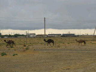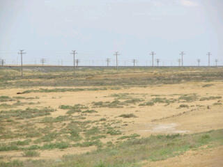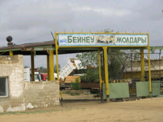 Verder is het vrij droog, het enige wat er groeit zijn telefoonpalen!! Steppe dus. In Beyneu hebben we onze laatste overnachting in Kazachstan gehad, de dorpsjeugd vond ons wel interessant en ze wilden graag op de foto, met het lokale speelgoed!