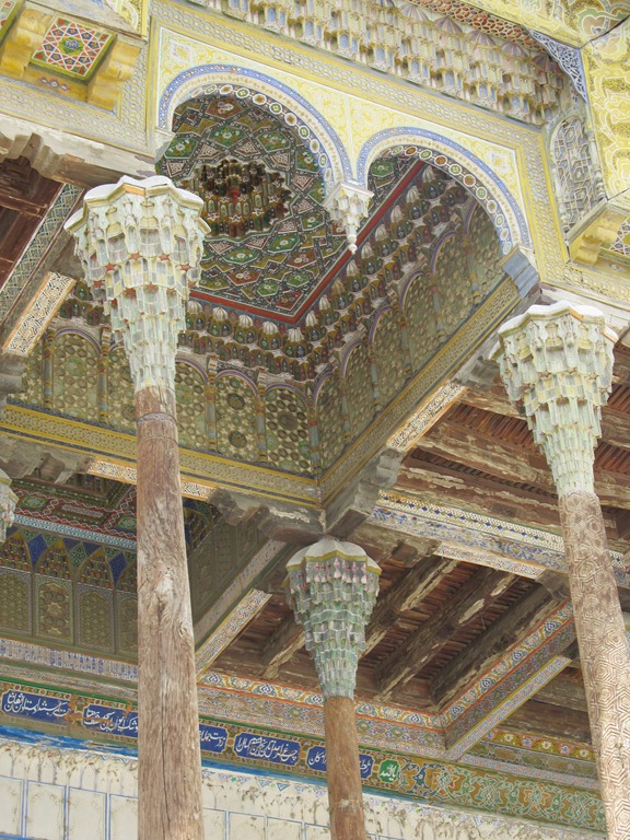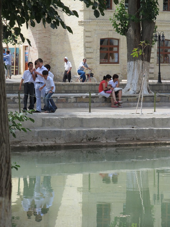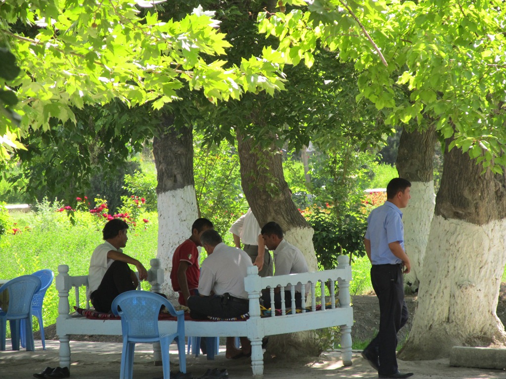 Vandaag een bezichtiging van deze stad gehad, onderdeel van de zijderoute en bekend om haar mooie wandkleden, keramiek, en smeedwerk zoals messen. Ook de irrigatie van waterkanalen heeft de stad inmiddels zover gebracht dat het kraanwater hier gewoon drinkwater is. Dit is anders geweest, in de 19e eeuw stierven de mensen hier rond de 32 jaar doordat ieder ditzelfde water gebruikte en de ziektes zich als konijnenplaag verspreidden. Dat terzijde. Wij zijn vandaag naar het mausoleum van Ismal Samani geweest.![]()