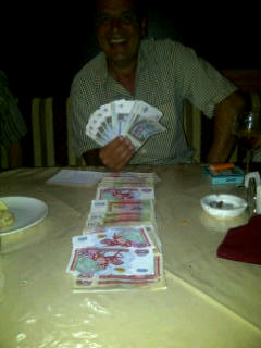 De wodka kost hier 1,50€, de sigaretten 50 ct, de diesel 38 cent per liter! Men rookt hier allemaal daarom zjn de sigaretten zo goedkoop, of waarschijnlijker..andersom! Goed voor de tabaksindustrie in ieder geval! Wanneer we deze dieselprijs overal zouden hebben reden we voor 1800 Euro deze route aldus mijn man!