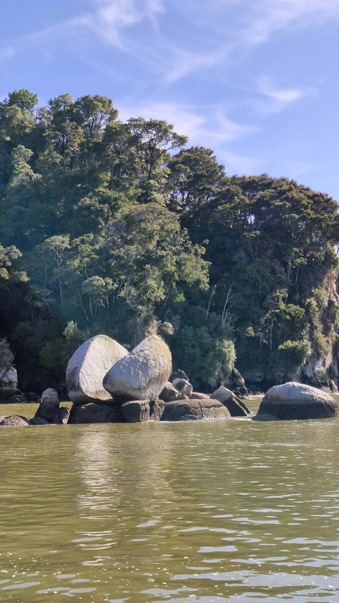 Ik zou bijna de meest gefotografeerde rots vergeten! In tweeën gesplitst door…niemand die het weet! De Split Apple Rock (lijkt op die groene mossel van Havelock 😅)