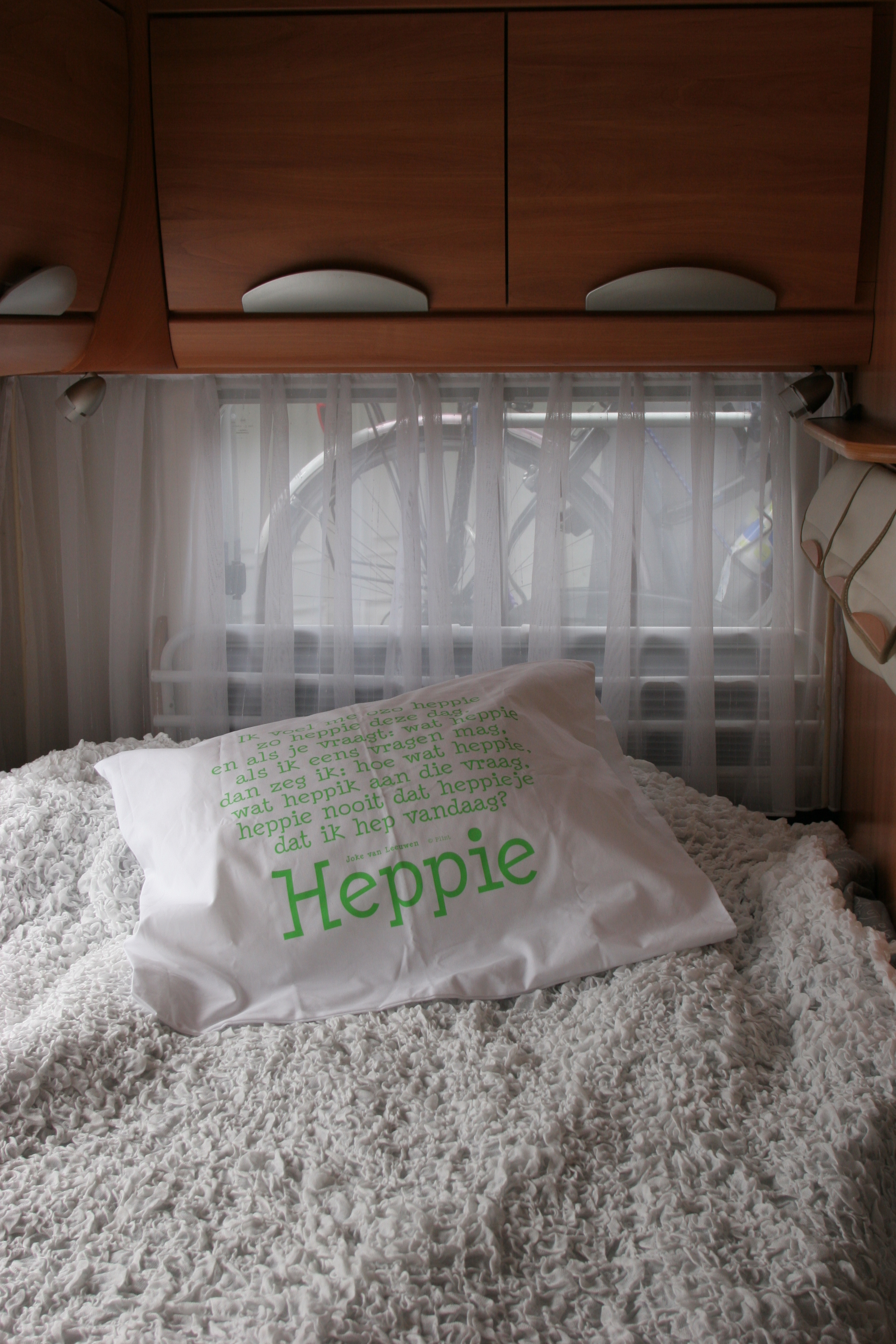 Laat in de avond toch aangekomen op een werkelijk romantisch, een eerste overnachting waardig, camperplekje in Duitsland. Zij, T-shirt, blote voeten, “wat heb ik het koud”, hij “doe maar een vest aan of duik in bed , de eerste avond gaan we niet meteen dat gas aansluiten, we moeten nog naar de Noordkaap!!”