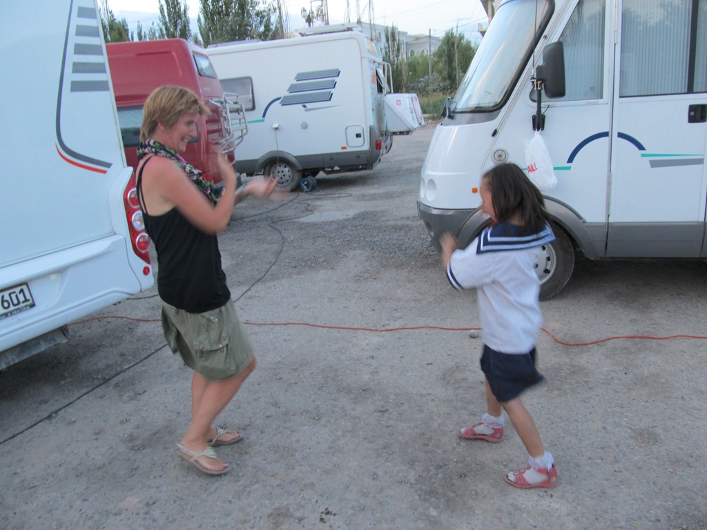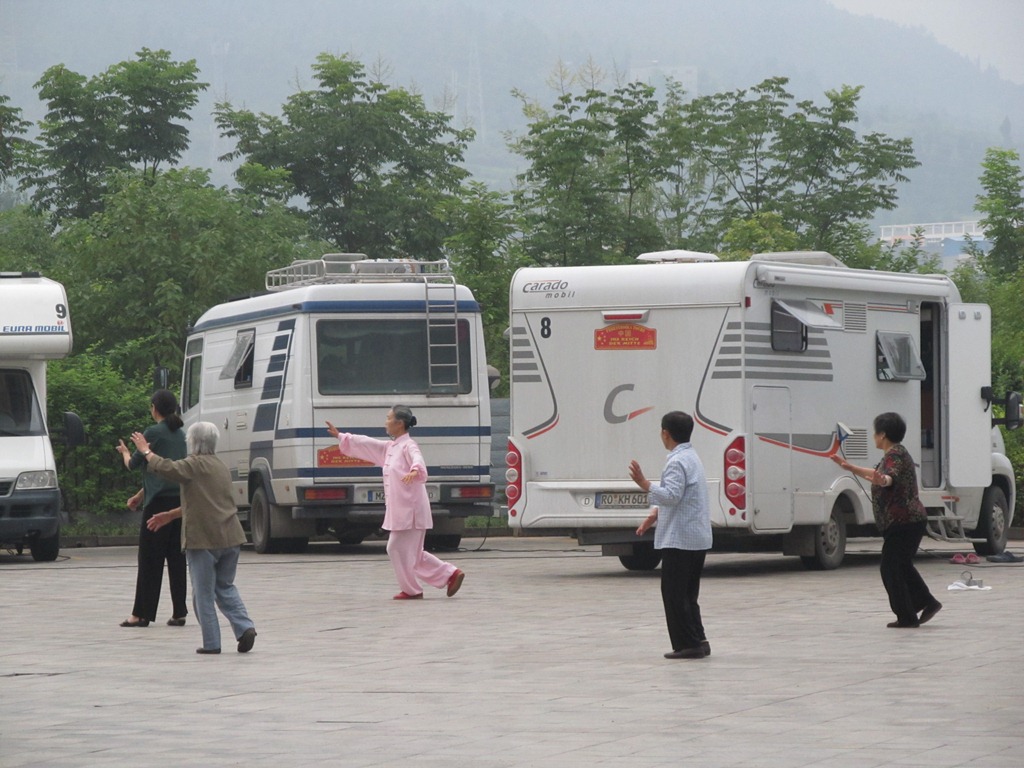 Het is ongelofelijk maar we zijn al over de helft! Met ladingen wereldgerechten teveel, evenzoveel koffiefilters te weinig, schiet de tijd voorbij. Onze website en de BB zijn onze linken naar thuis, wat we anders teveel zouden missen. Heerlijk om te whatsappen,te mailen en de site te updaten. De IPod zorgt voor een westers deuntje in de camper, die, inmiddels volledig chinees aangekleed, met een nieuw rustig huisdier, nog steeds voort hobbelt! 2 garages gezien, in Uzbekistan en China, bijzondere ervaringen! De route afwisselend, het groepsproces variërend, de straatbeelden fascinerend.