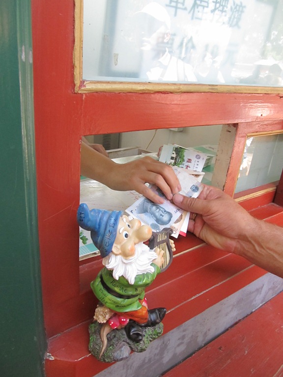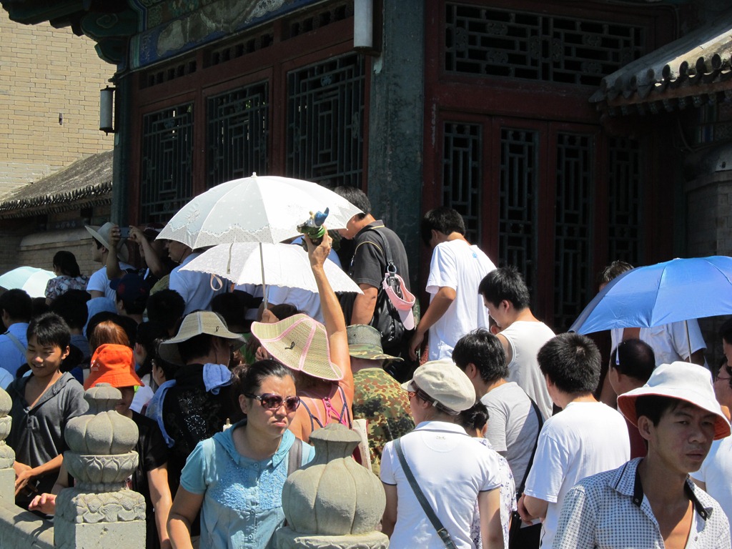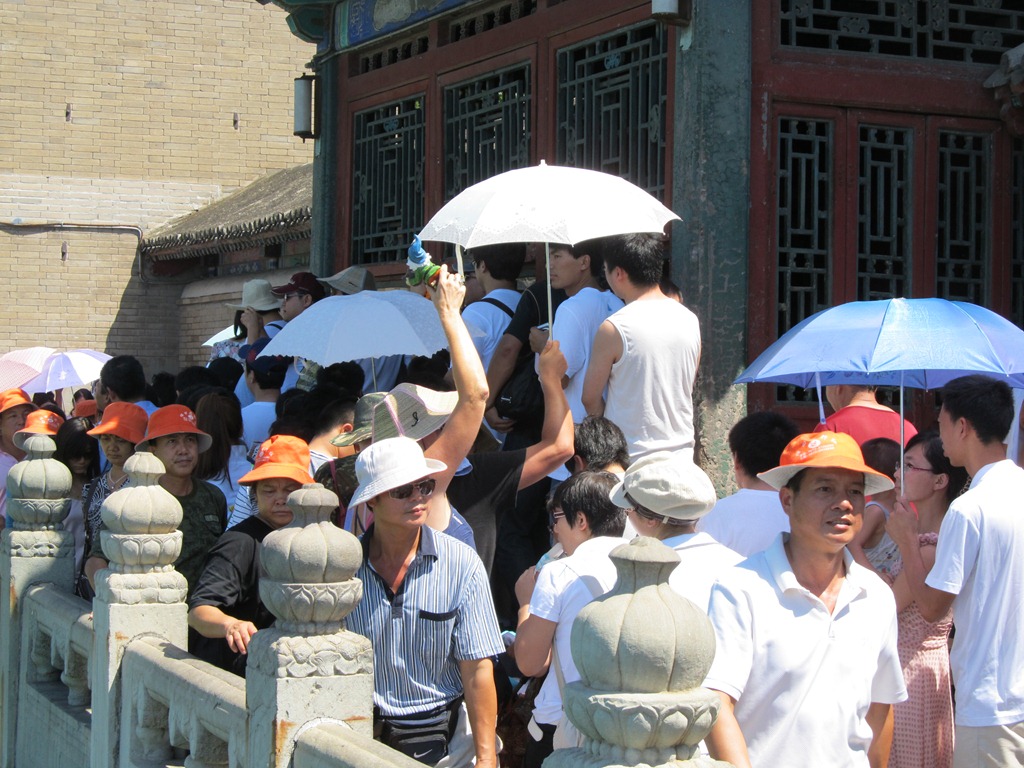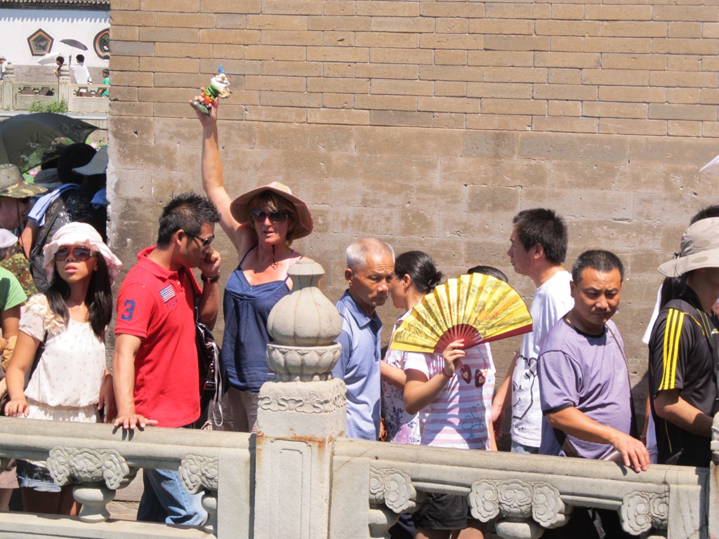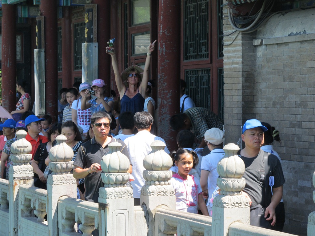 Nou, eindelijk de hoek om kunnen we even over de massa heen stijgen! Hmm..keizerlijk (Queenie) gevoel.. Zo werd Cixi ook rondgedragen, alleen door wat meer bedienden, lopen was voor haar taboe! Maar het moet gezegd een terrein van 290 hectare is ook pittig!