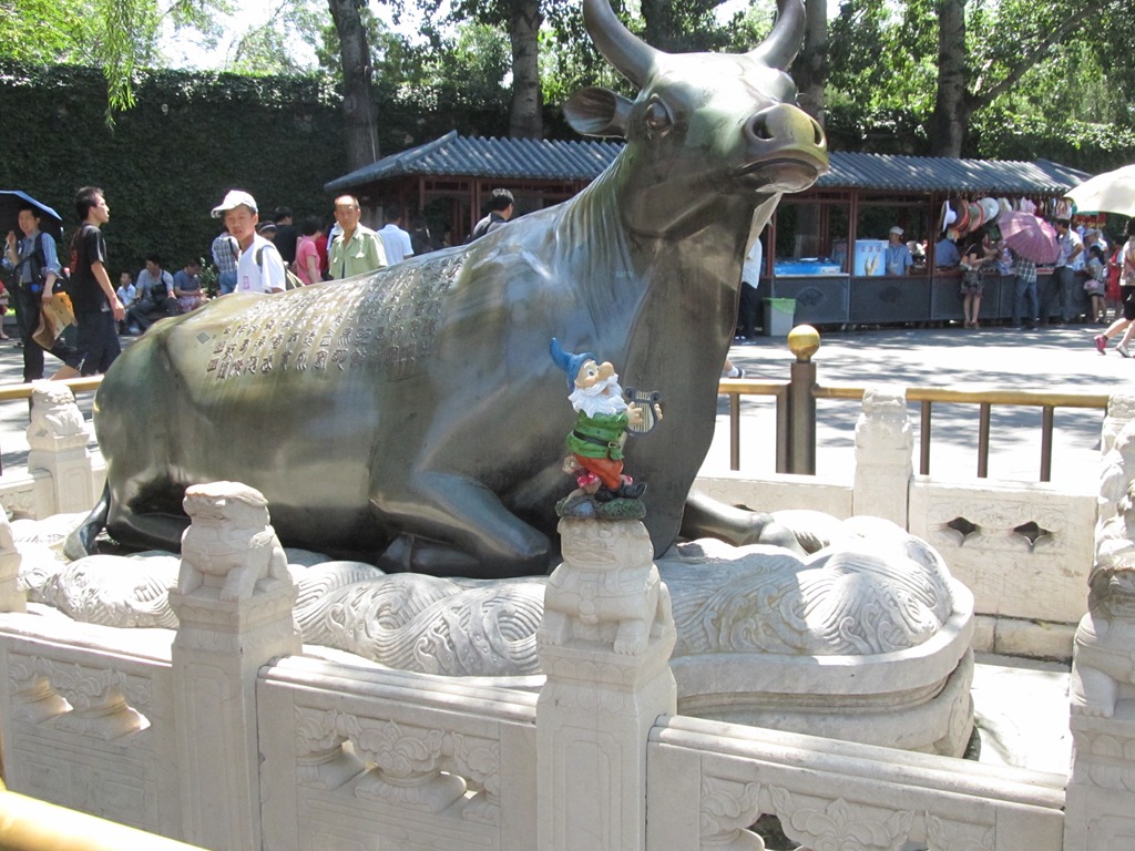 De Bronzen Os, brengt het water tot rust..tevens het einde van dit tripje! Oh nee, vergeten we bijna een souvenirtje te kopen, dat kan natuurlijk niet, zo nog een hangertje en weer verder!![]()