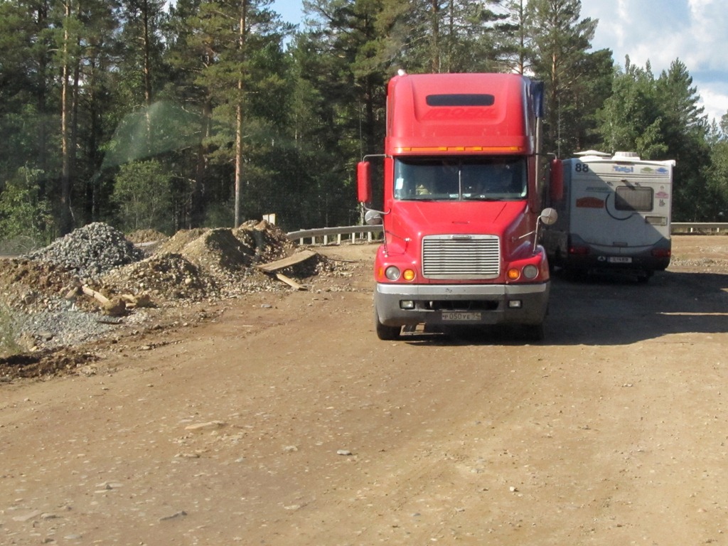 We vreten wat kilometers door het Siberische landschap. Er moet dan natuurlijk ook af en toe een uitdaging liggen in het bijrijden, dus er wordt dan een opdrachtje uitgezet..