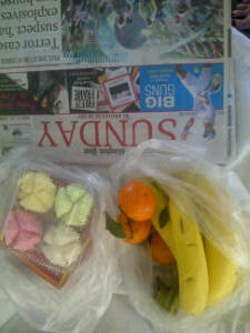 De volgende ochtend kijken we naar de zonsopgang en brengt onze lieve gastvrouw ons als verassing een krantje en fruit. We ontbijten aan t strand! Het miljonairsgevoel houden we nog even vast..