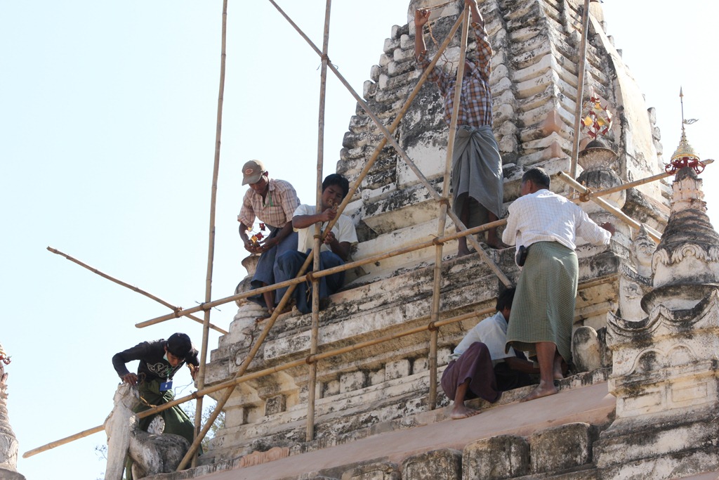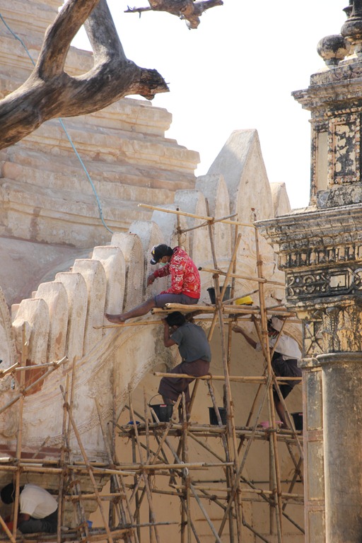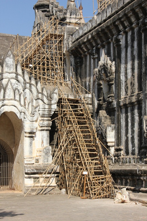 Wanneer er meer dan 3000 tempels zijn is het niet meer dan logisch dat er ook veel restauratiewerkzaamheden zijn, en de bamboe blijkt goed steigermateriaal zoals we al eerder hebben gezien!