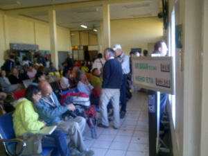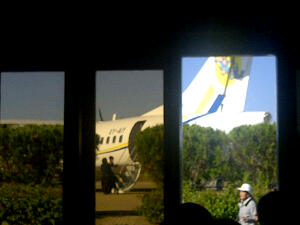 Vlieg er eens uit in Myanmar! Van de 3 binnenlandse vluchten die we hadden is 66% gewijzigd.Waarom? Nobody knows! Vorige keer kregen we ons andere ticket nog in het hotel vandaag kwam er een mannetje op t vliegveld naar ons toe gerend met andere tickets! De koffers verdwijnen in een poep en een scheet onder je handen vandaan, met de lopende band mee, een paar andere mannetjes! Het gaat allemaal in sneltreinvaart en is een complete chaos! De vluchthaven zit vol met mensen met stickertjes om je in t goeie vliegtuig te loodsen!Af en toe wordt er iets door een microfoon geroepen wat niemand verstaat.. We vermoeden de vluchtnummers..De vliegtuigen staan echt op 10 meter voor de vertrekhal op je te wachten!Onze koffers worden richting vliegtuig geduwd door weer andere mannetjes. We hebben inmiddels met Myanmar air gevlogen, air Mandalay en vandaag gaan we als t goed is tot nu toe met air Bagan! Het vliegtuig landt en 10 minuten later met nieuwe passagiers stijgt t weer op. Ongelofelijk hoe dit allemaal goed gaat! Vliegen in Birma weer een ervaring rijker!