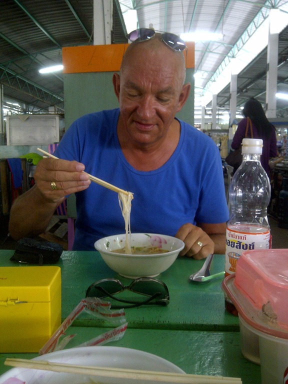 En weer verder, we zullen het nog eens vragen in een winkel: bij al het wegduikend personeel is er één het slachtoffer: op z’n Thais, gebarend, rechts, links en dan achter die winkel, daar moet het zijn, eindelijk gevonden!! Is wel ergens anders dan op onze plattegrond staat, maar niet getreurd, eindelijk het busstation gevonden!