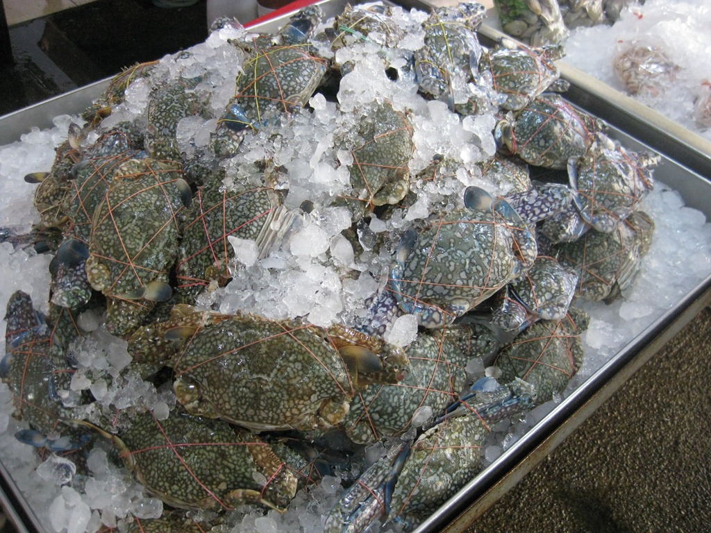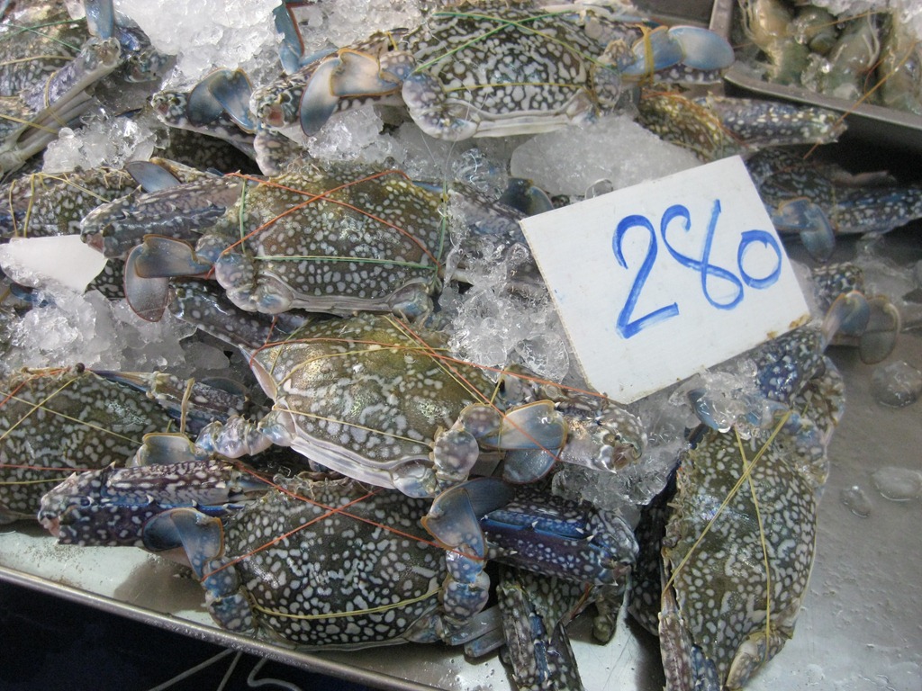 De scooter bracht ons eerst naar de markt waar de krabjes, waar Cha-am om bekend staat ons toelachen(??) maar waar we echt even rond moesten lopen!