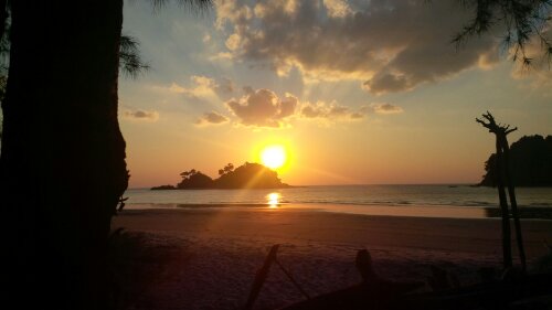 Na onze jungle-ervaring en lake-experience, onze laatste uitdaging, we zijn niet voor 1 gat te vangen! Een heel rustig, niet toeristisch eiland! Koh Phra Tong, ongeveer 180 km. boven Phuket. Uiteraard alleen met scooter, want nu de camper er niet bij is, staat het volgende gemotoriseerde voertuig op nr. 1. Onze gehuurde scooter, die al veel kilometers heeft versleten met de twee oude hippie’s op z’n rug!