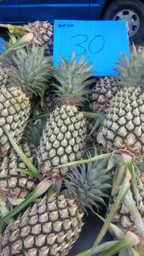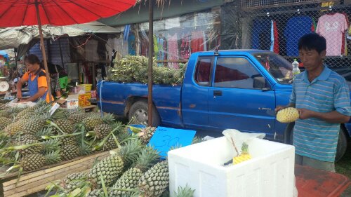De markt ligt er vol mee, met kleine pickupjes worden ze aangeleverd, ter plekke verkocht en schoongemaakt als je dat wilt.