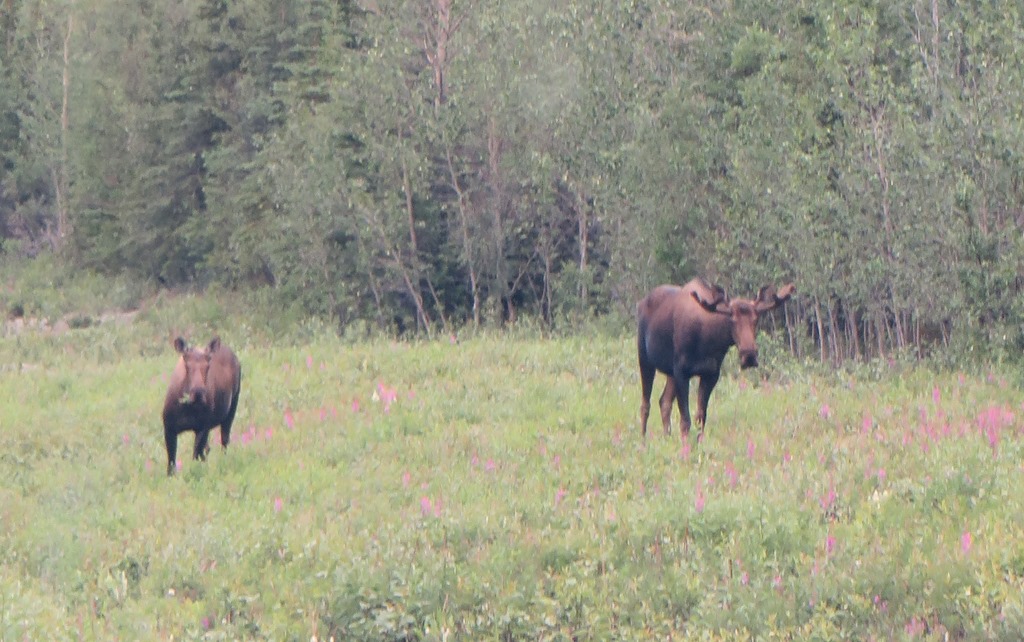We rijden verder, en worden door de natuur hier nog verrast door 2 elanden, een schitterend uitzicht, ondanks het slechte weer, en vinden een mooie slaapplek.