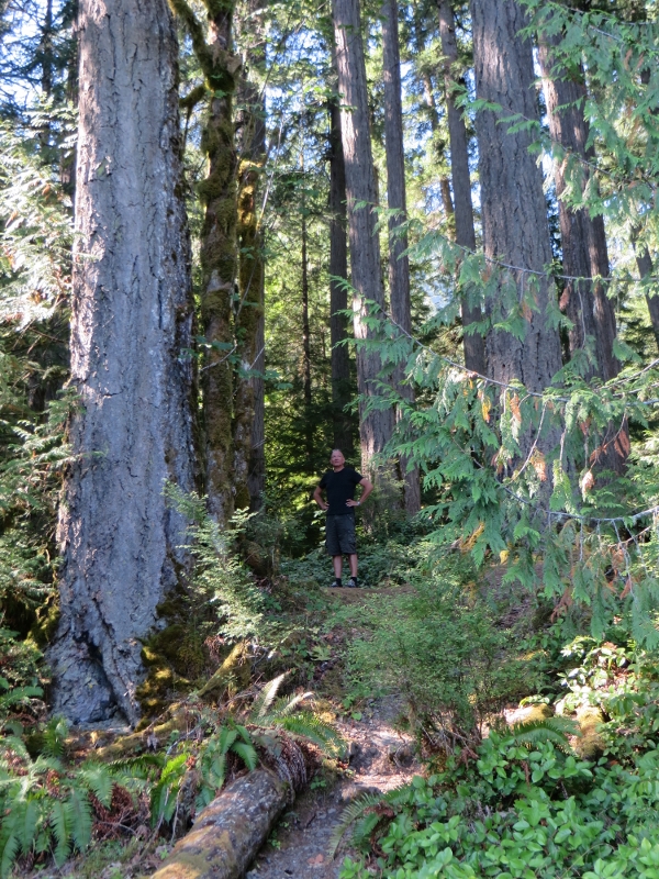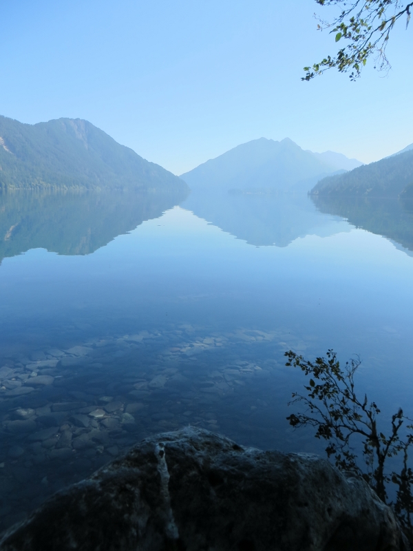 Dit is de 101, schitterende route, het Olympic National Park gedeeltelijk door regenwoud, langs een giga-meer, wederom zo blauw! Continu rijden dubbele opleggers met hout ons tegemoet, hout, hout, hout, genoeg hout hier!!