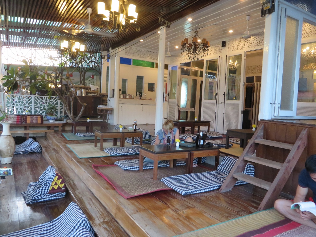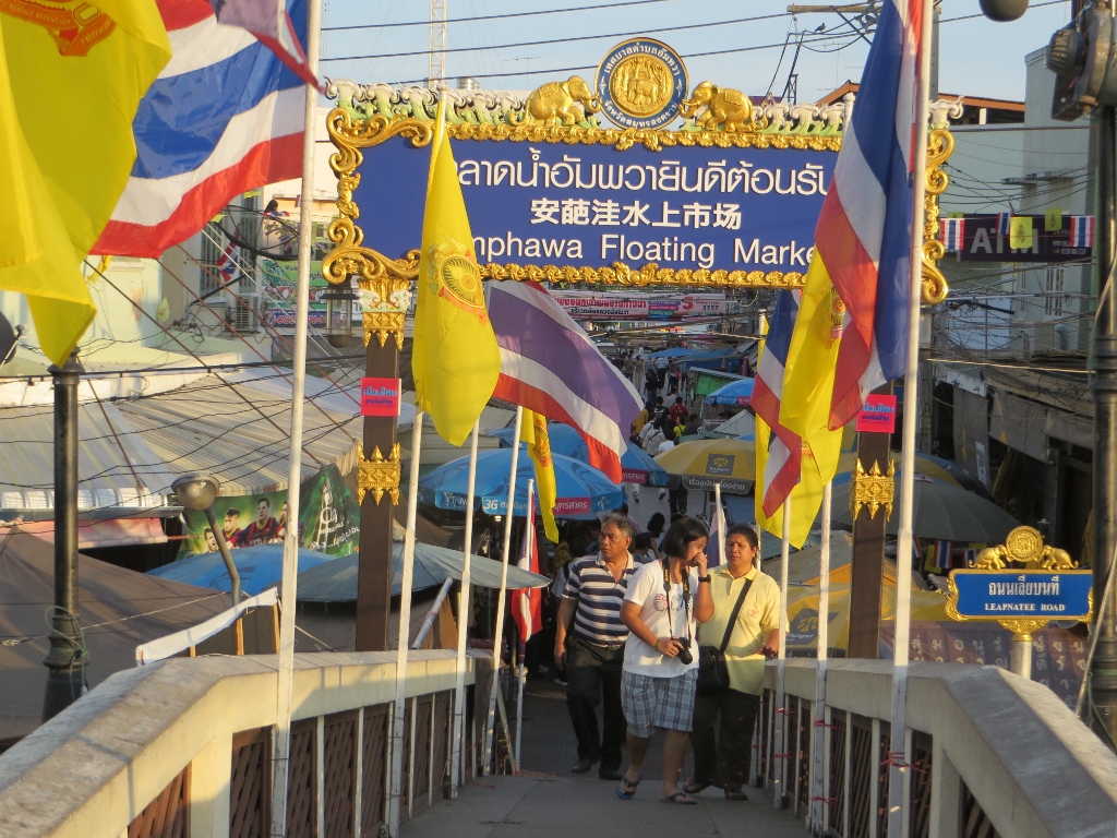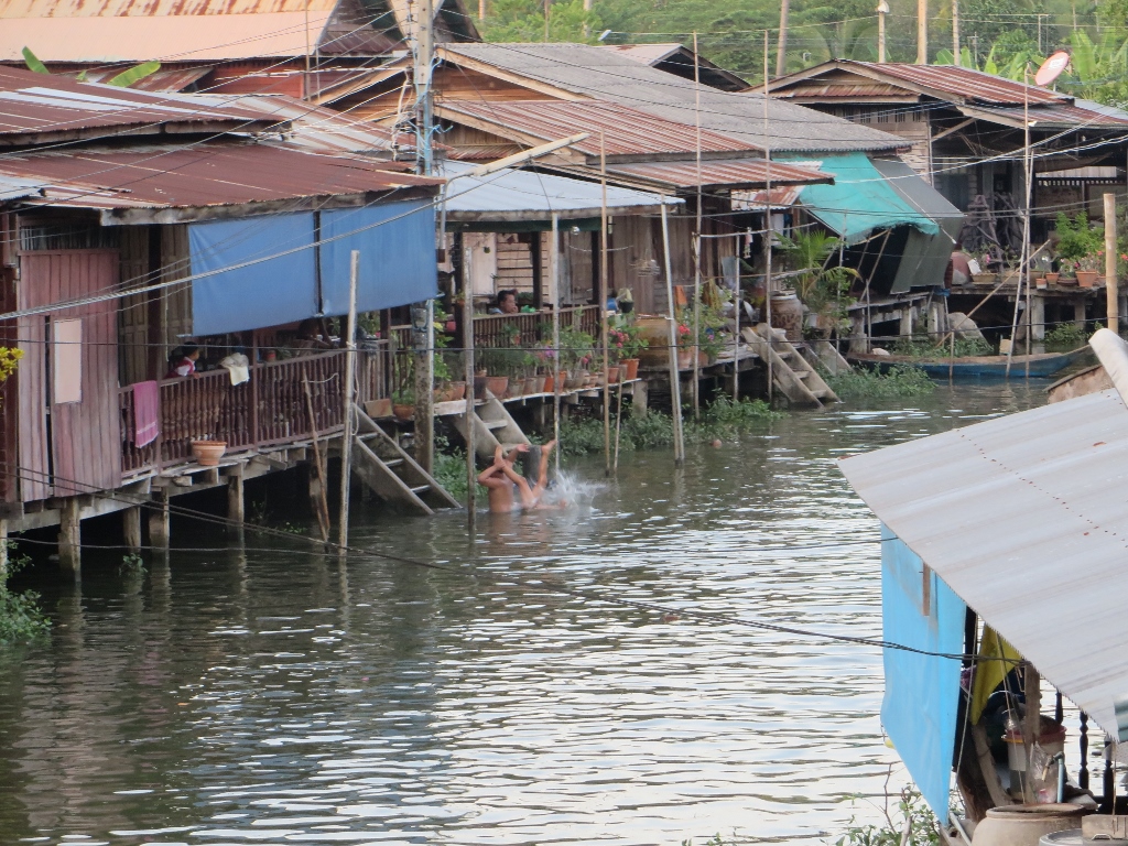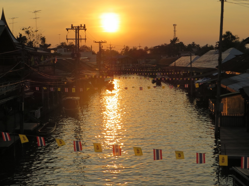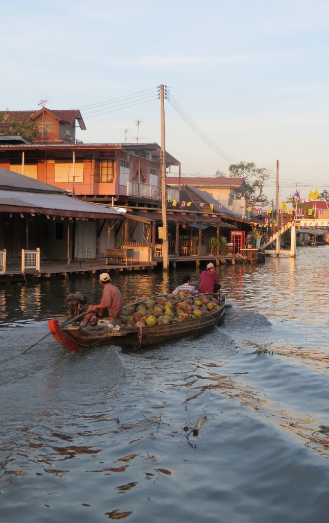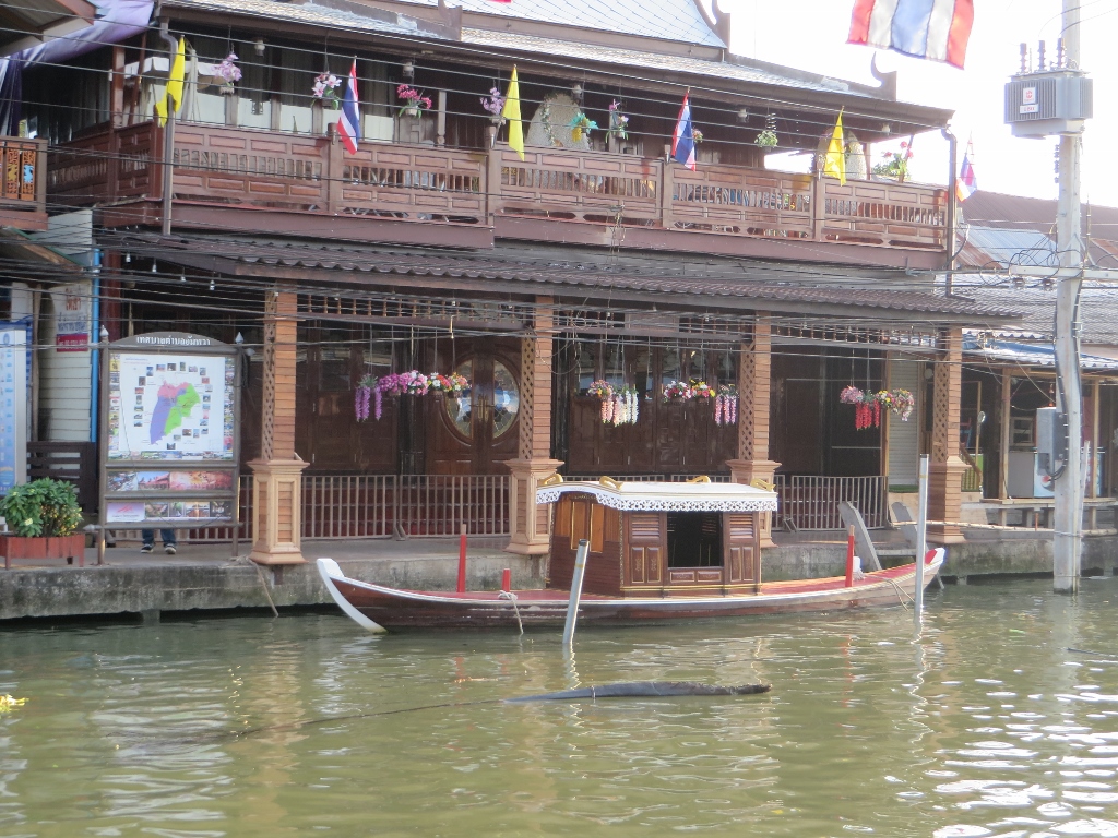 We rijden naar Amphawa, in het weekend is hier een grote floating market, wij zijn er op maandag, de day after, rustig dus! Ons ghuesthouse is wondermooi! We genieten van een ijsthee, en de bootjes in de klong.