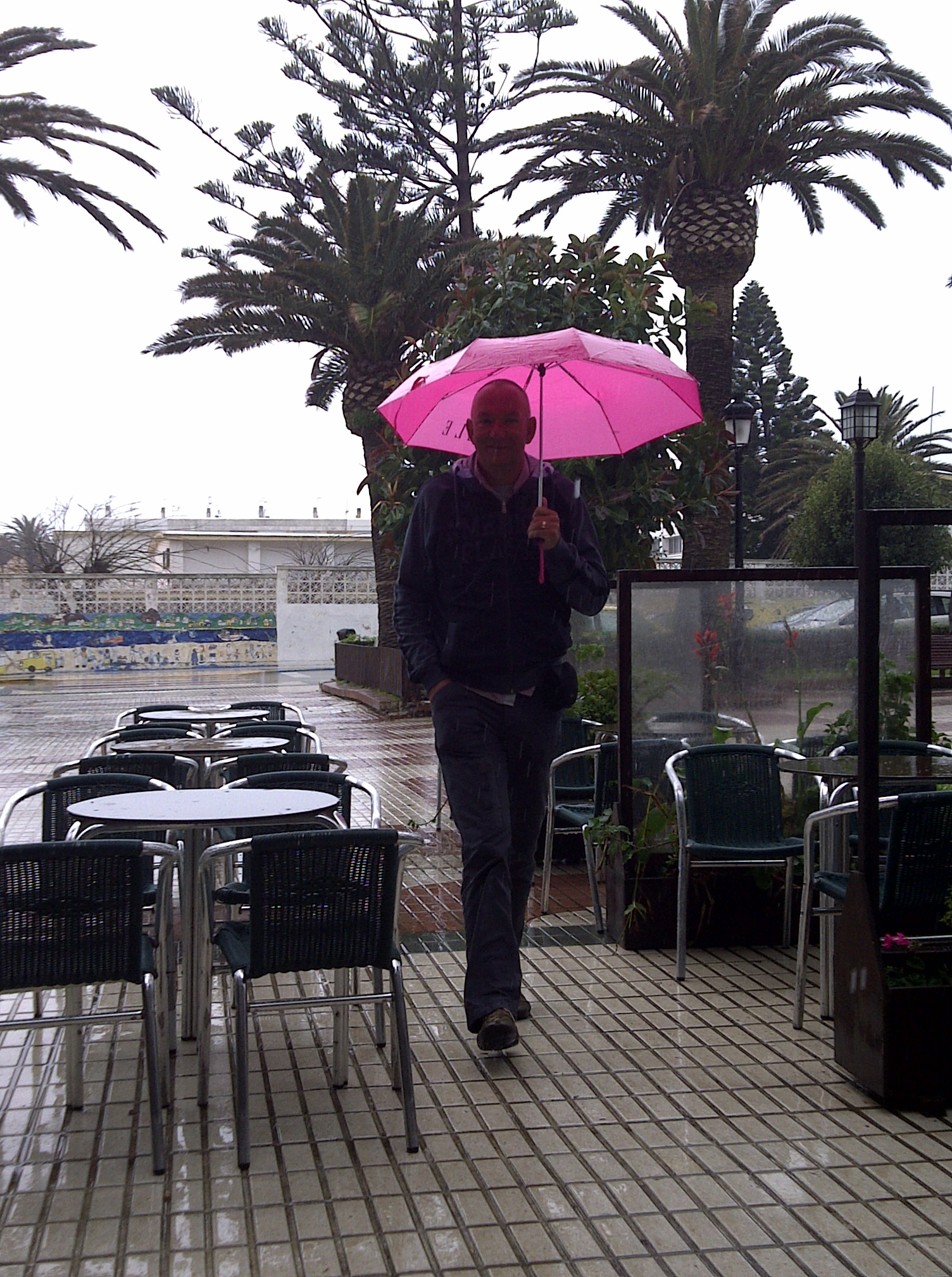 De gids was vandaag erg welkom, want wat te doen als t regent, dus naar Tarifa gereden, ongeveer 15 km verder, leuke plaats! Maar zie foto ook daar regen.