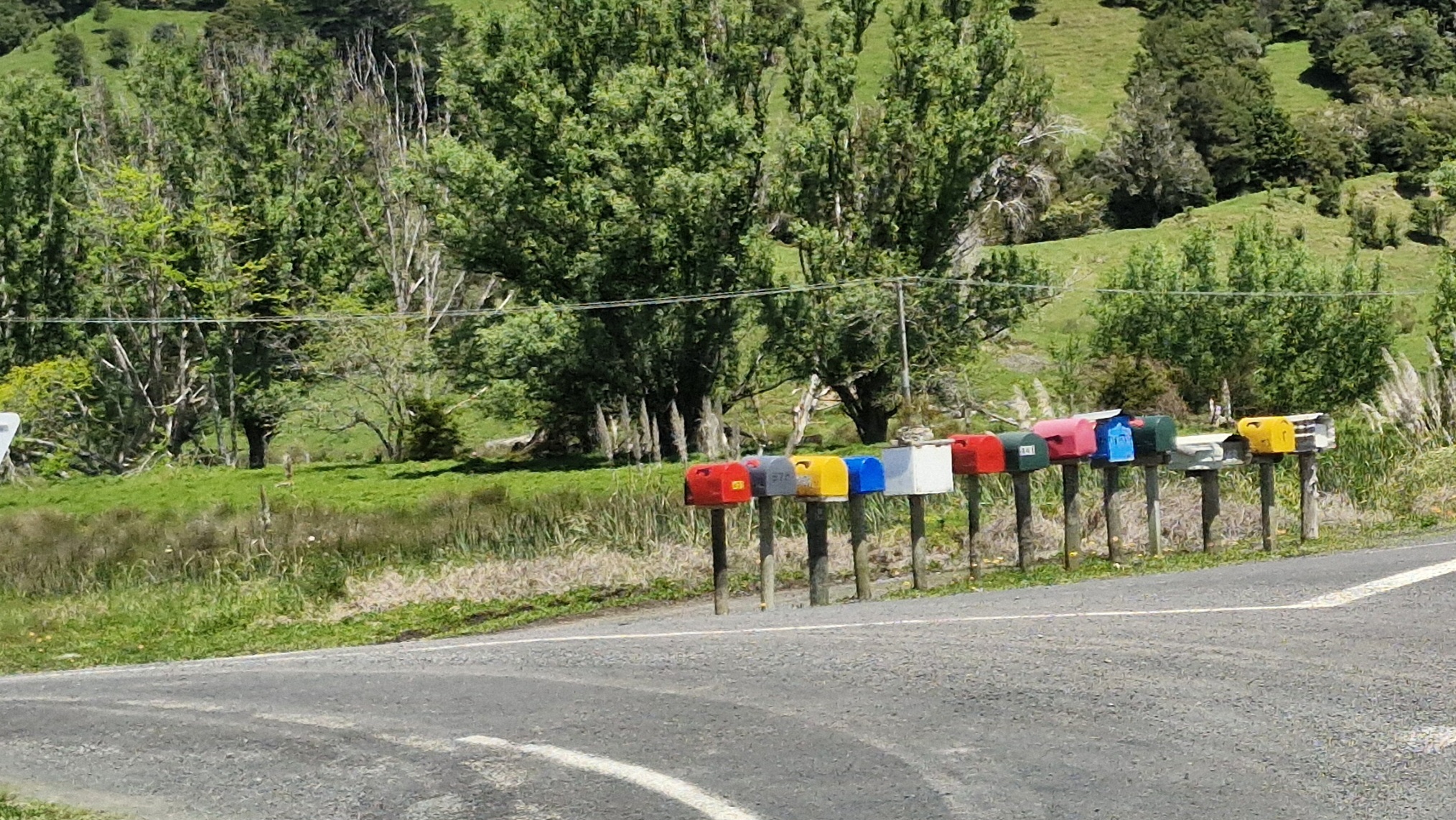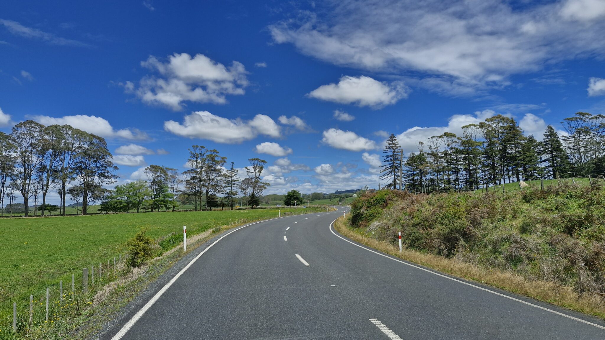 Na alle treats van gister, en een goeie nachtrust laten we Paihia, achter ons. We gaan naar de Westkust, ( aan de Tasman zee) , ook wel de Kaurikust genoemd Een ritje van ongeveer 85 km. Een zonnige dag vandaag, lekker!