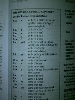 Zoals jullie hebben kunnen zien op t kabouterformulier, hebben we hier nog een pittige studie Russisch voor de boeg! Ik ben al begonnen het cyrillisch alfabet te leren, je wilt toch een beetje weten waar je heen rijdt! (ook al doet onze frusti-garmin het goed nu!). Dus als Herman rijdt zit ik naast m het Russisch alfabet te oefenen..valt niet mee soms, tip vd sluier, een H is een n, een C is een s, een 3 is een z, niet gek hè, voor een beginnelinge!