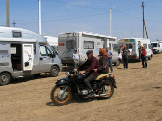 We zien mooie fleurige kerkhoven ( kunstbloemen), loslopende koeien en paarden, schaapherders te paard, geitjes, veel mensen die op de bus wachten en ook wel met ons mee willen, slechte wegen, veel politie, scheurende russen die ons, zelfs met vrachtwagens inhalen, genoeg te beleven dus!